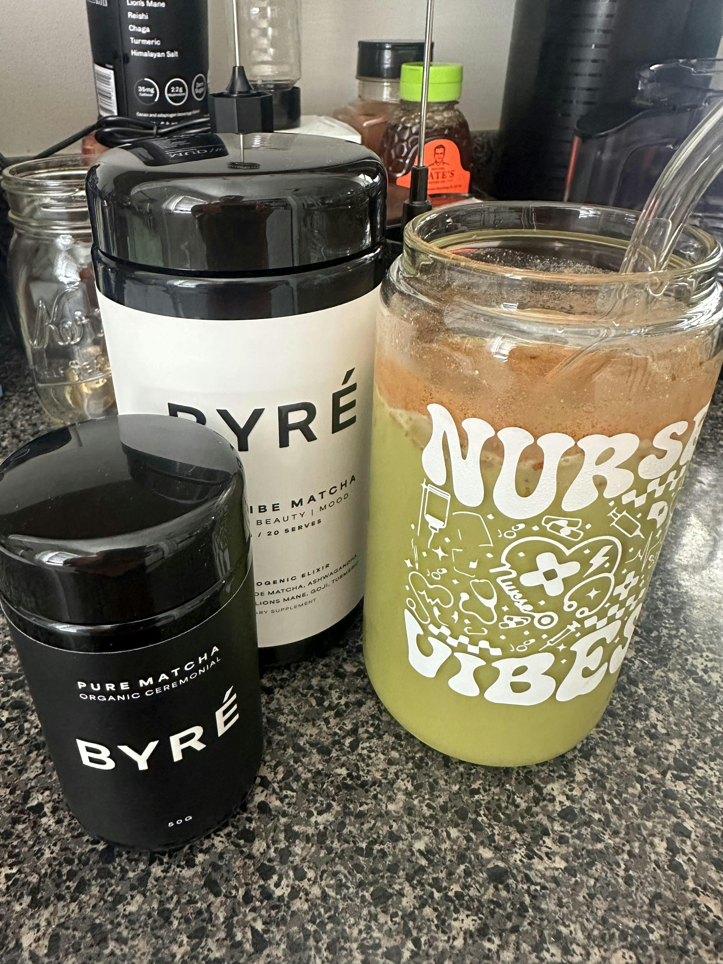 High Vibe Matcha Jar + Pure Matcha + 2 x Scoops (tbsp + tsp) + Frother